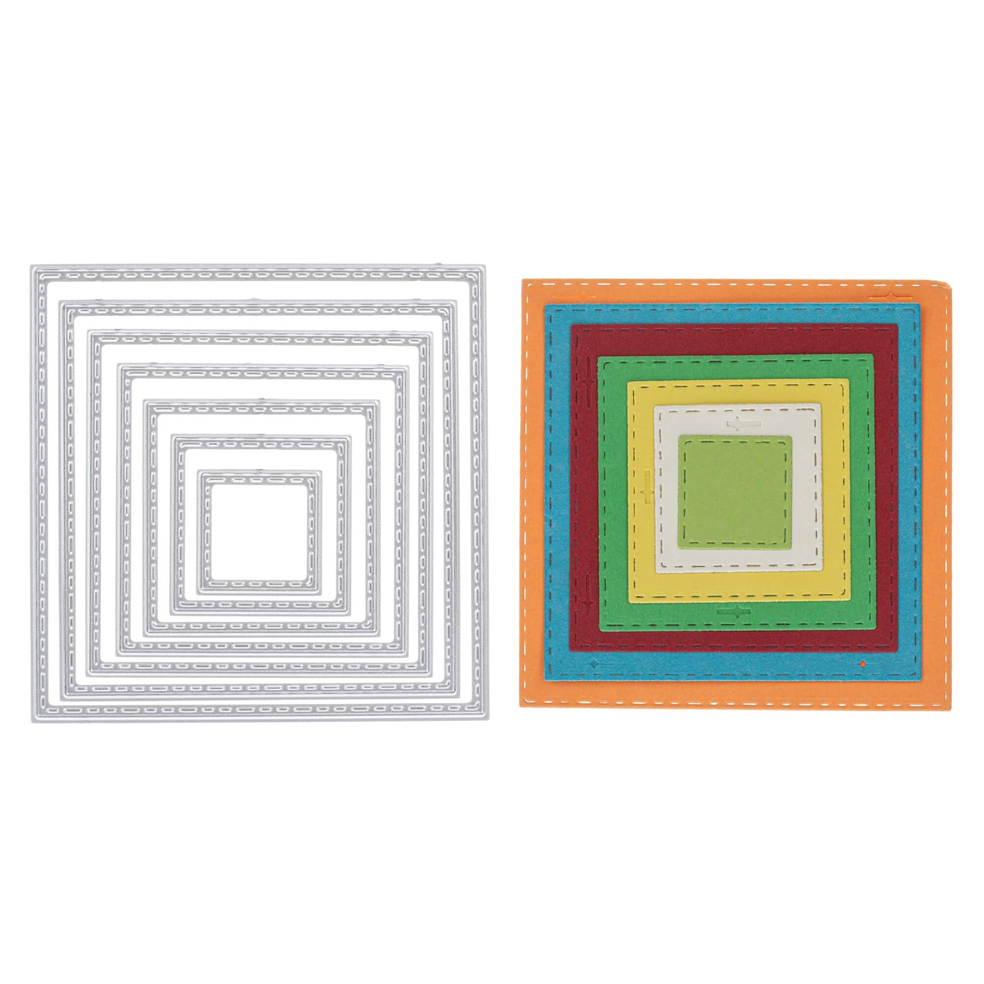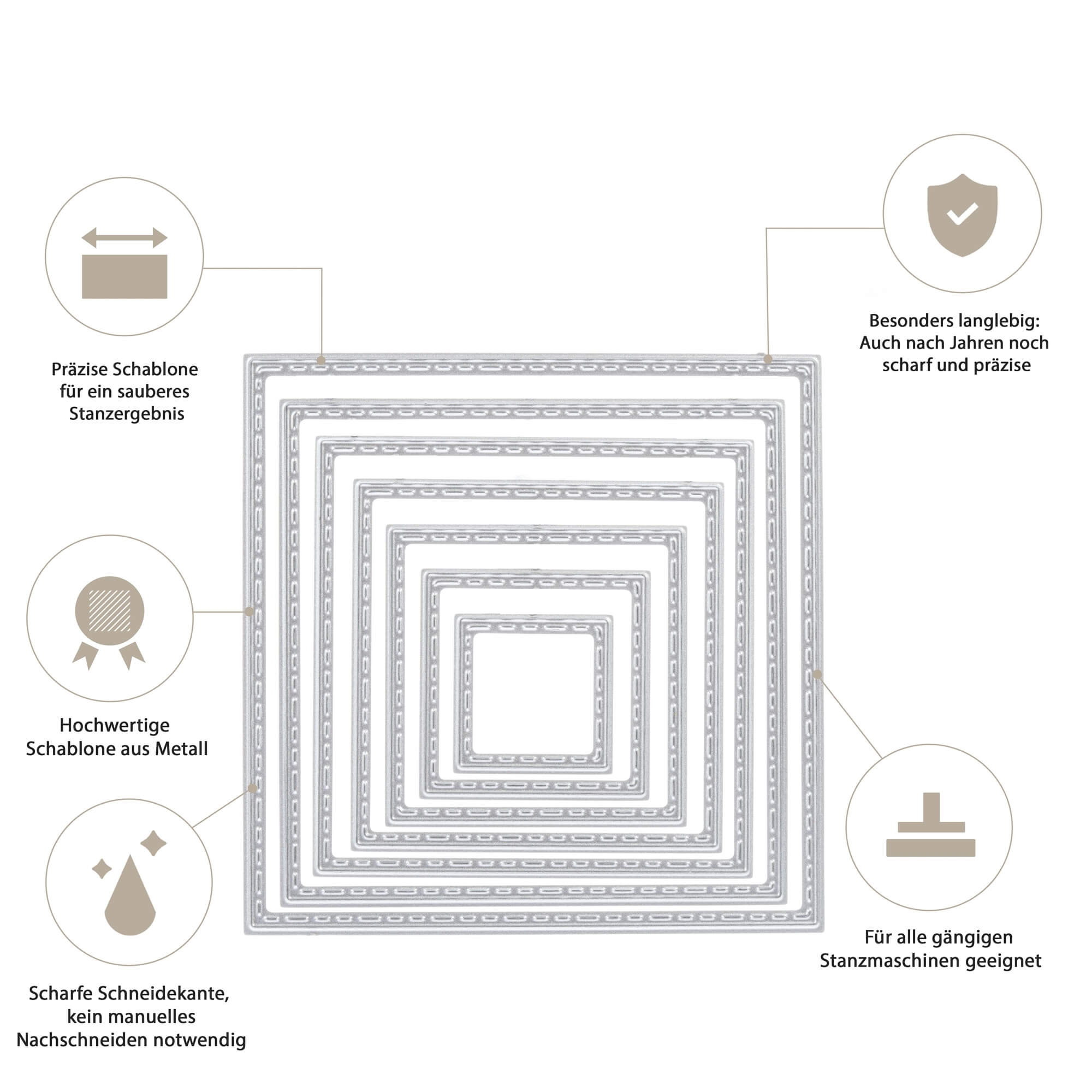 Unsere Stanzschablonen sind grundsätzlich mit allen Stanzmaschinen kompatibel, wenn sie hineinpassen. Für die Stanzschablone: Sieben quadratische Rahmen gilt: