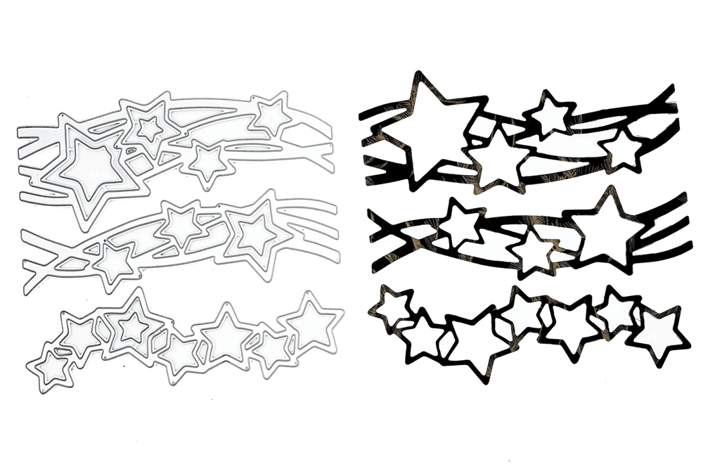 Unsere Stanzschablonen sind grundsätzlich mit allen Stanzmaschinen kompatibel, wenn sie hineinpassen. Für die Stanzschablone: Sterne auf zwei Wellen gilt: