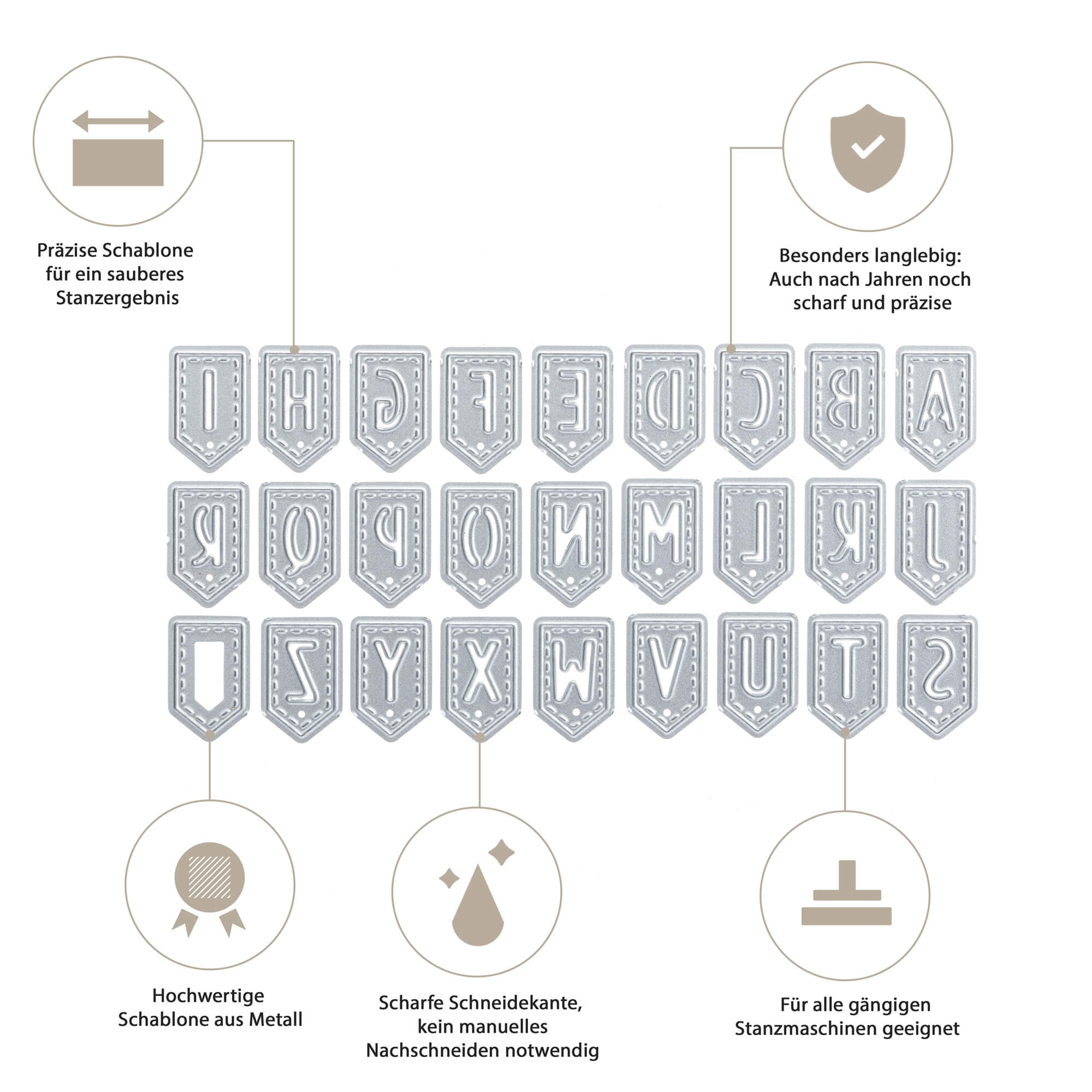 Unsere Stanzschablonen sind grundsätzlich mit allen Stanzmaschinen kompatibel, wenn sie hineinpassen. Für die Stanzschablone: Wimpelkette mit Buchstaben gilt: