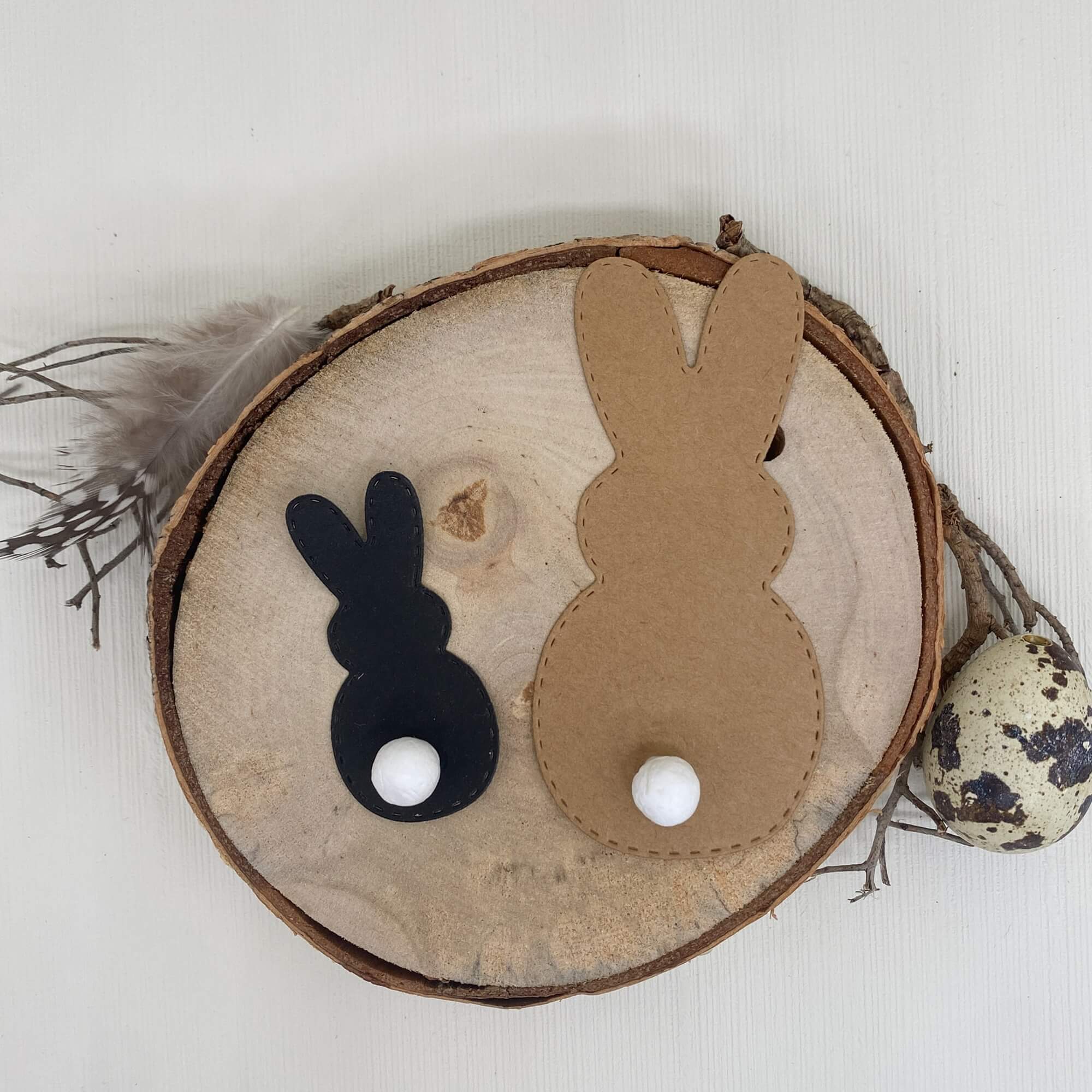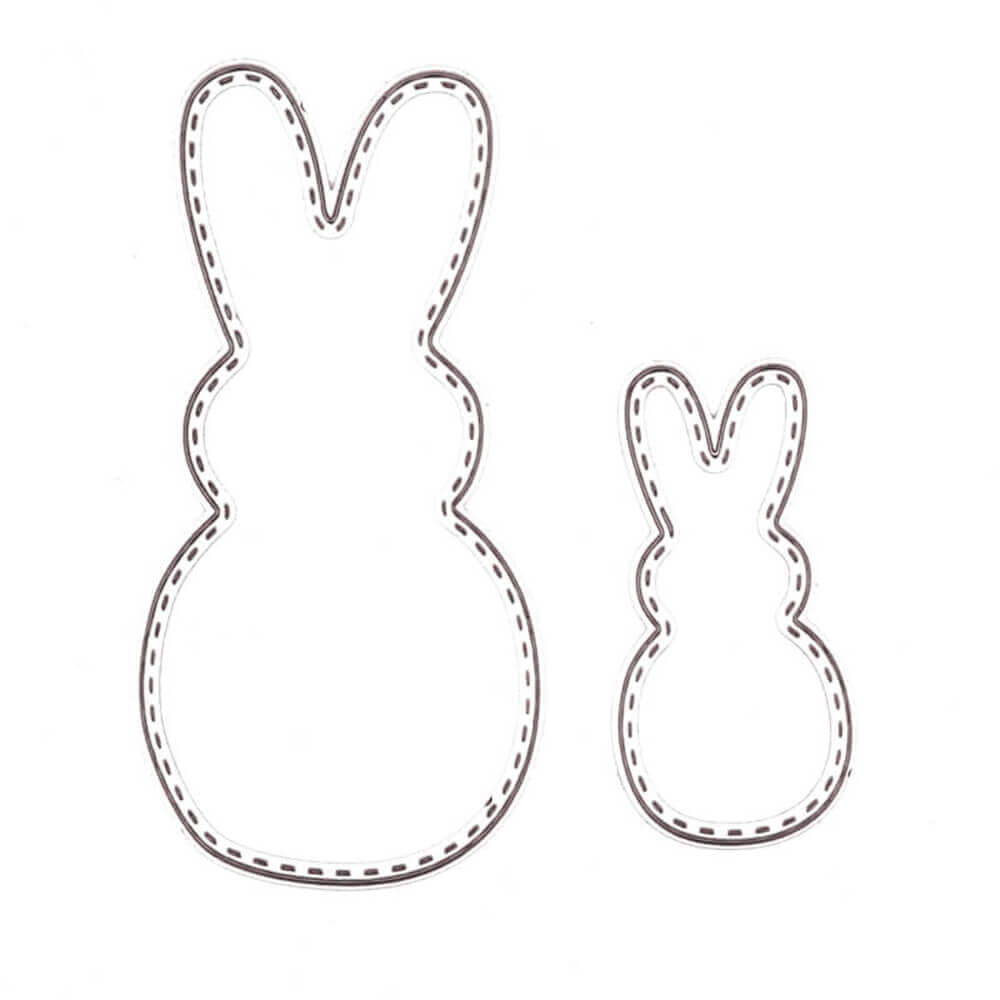 Kleiner und großer Hase, Gesamte Stanze ca. 6 x 10 cm, Größer Hase ca. 4,5 x 9 cm, kleiner Hase ca. 2,5 x 5 cm.