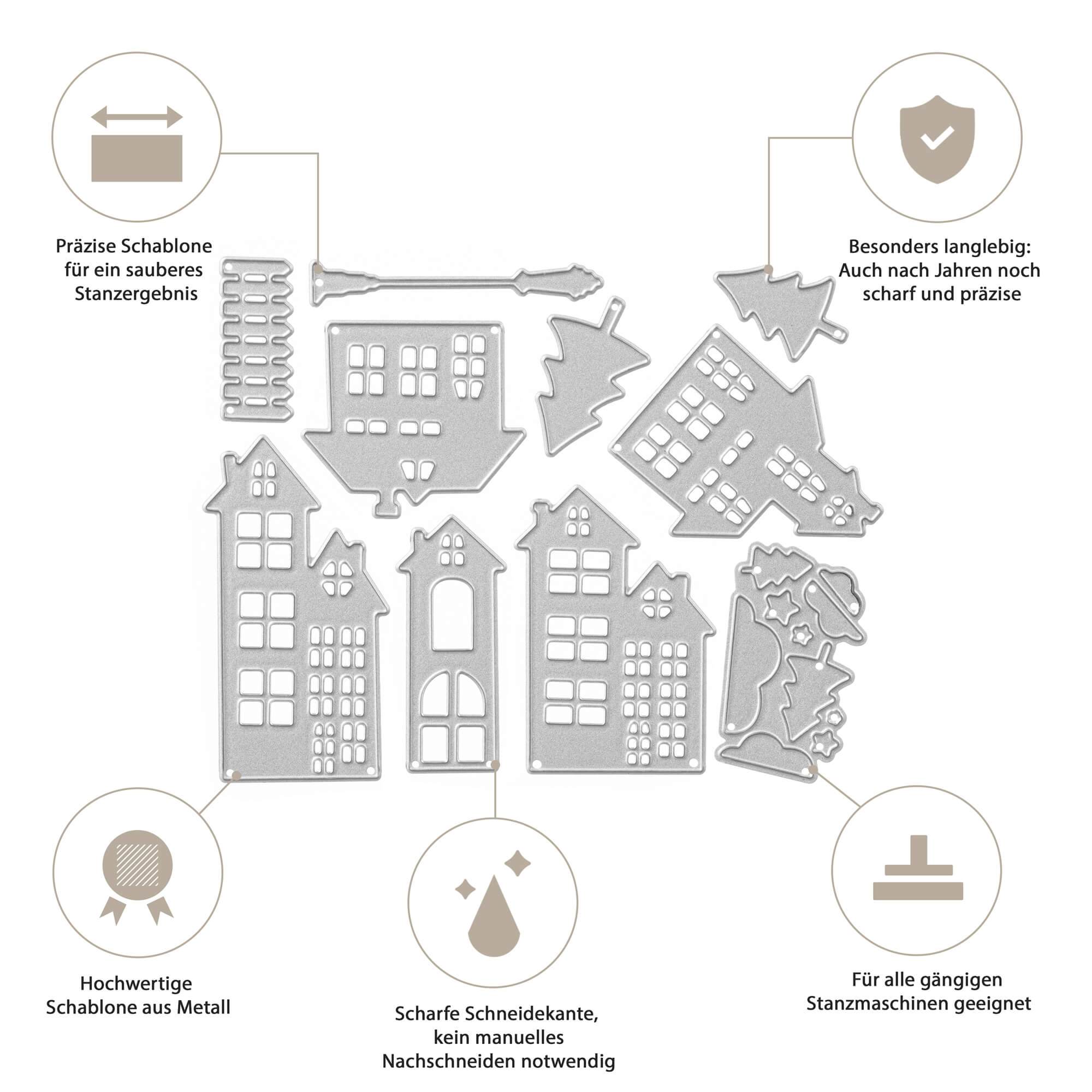 Alle abgebildeten Stanzen sind enthalten. Zubehör wie Papier oder Maschinen ist nicht Teil des Lieferumfangs