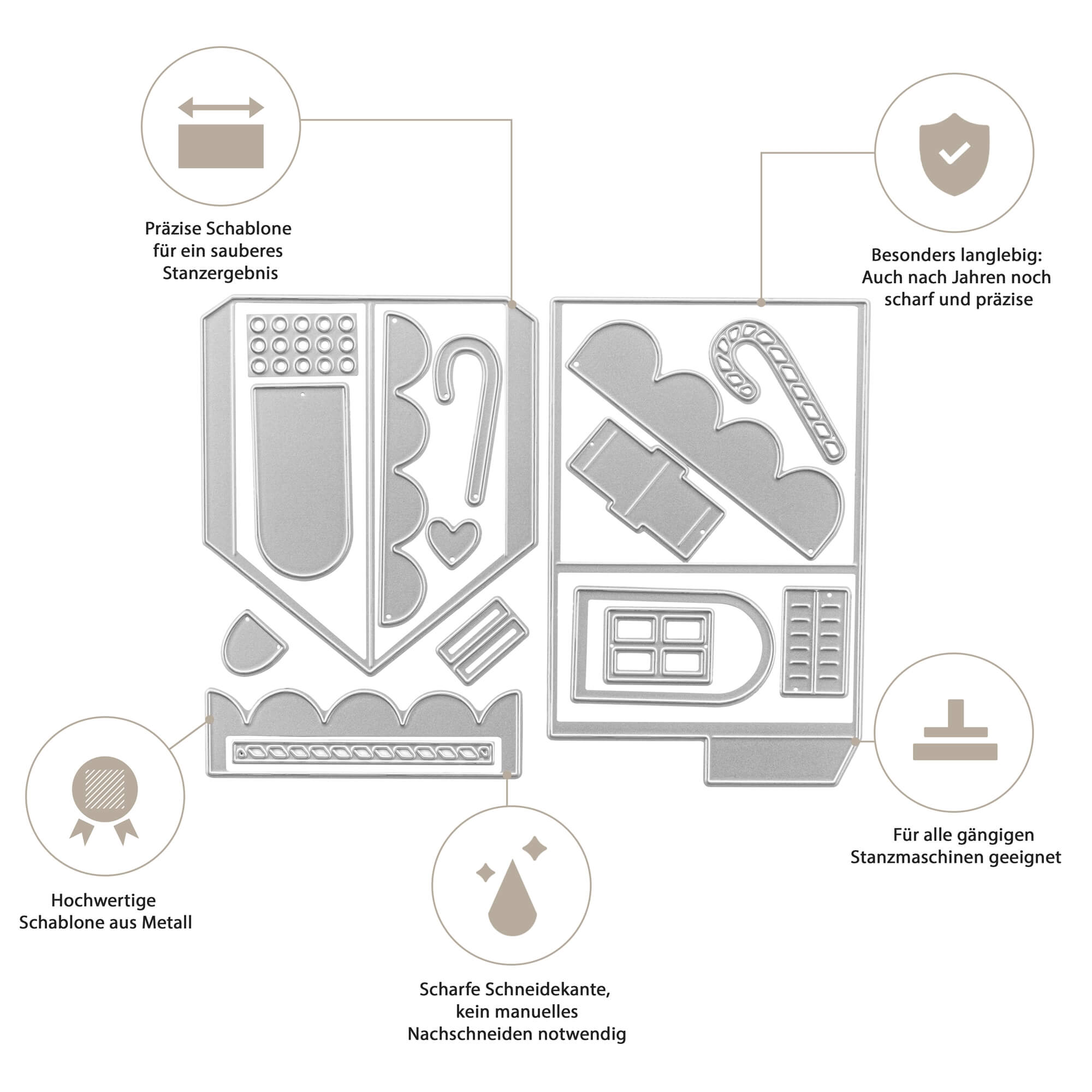 Alle abgebildeten Stanzen sind enthalten. Zubehör wie Papier oder Maschinen ist nicht Teil des Lieferumfangs