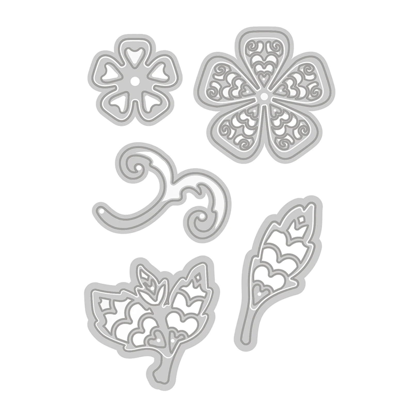 Alle abgebildeten Stanzen sind enthalten. Zubehör wie Papier oder Maschinen ist nicht Teil des Lieferumfangs