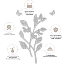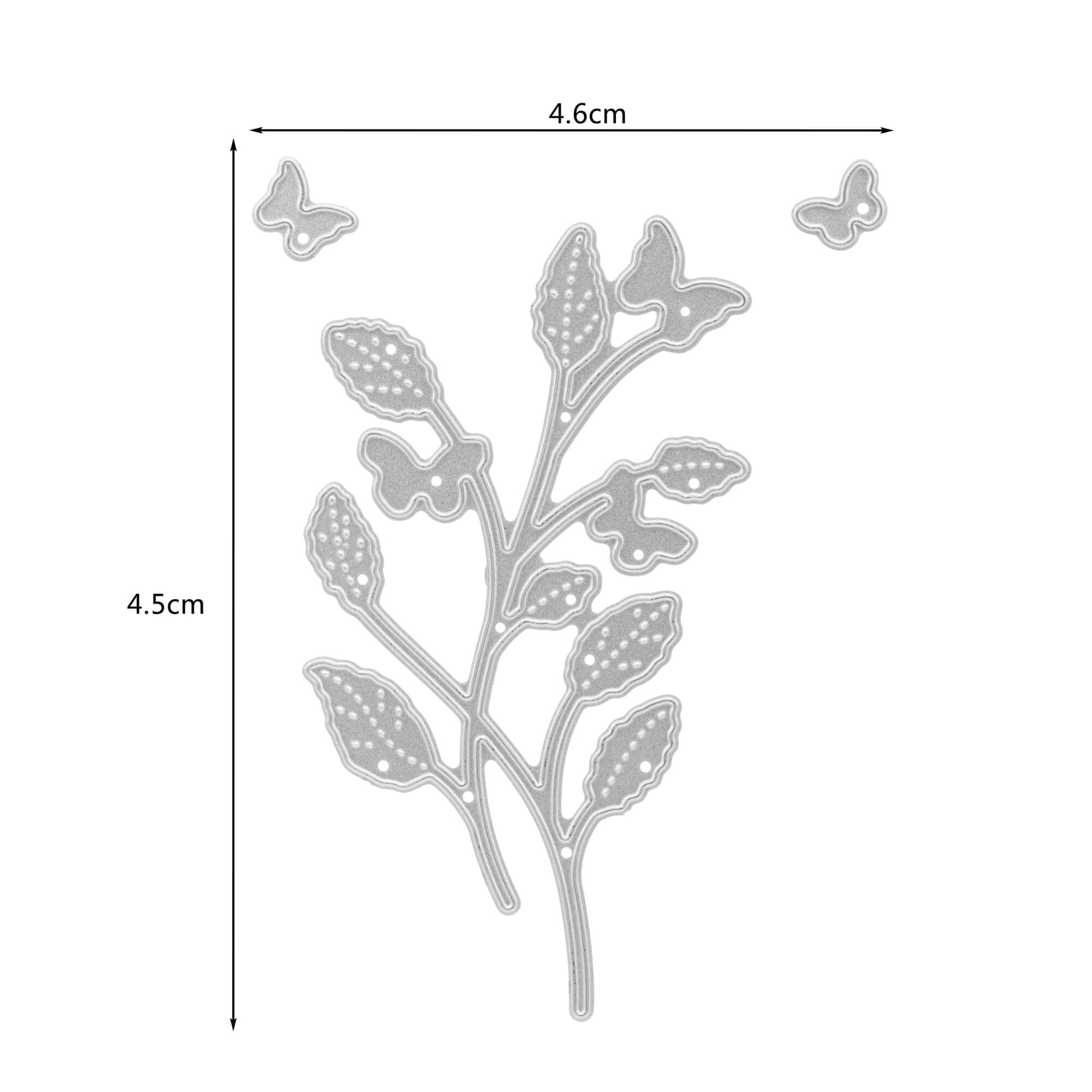 Eine Pflanze mit Blüten und Schmetterlingen auf der Stanze. Zusätzlich sind vier kleine Schmetterlinge enthalten, Größe ca. 4,4 x 9,5 cm.