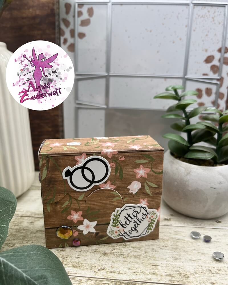 Größe der fertigen Schachtel: ca. 3 cm Höhe, 7 cm Breite, 6 cm Tiefe.Größe der fertigen Schachtel: ca. 6,2 x 6,6 x 3,4 cm.