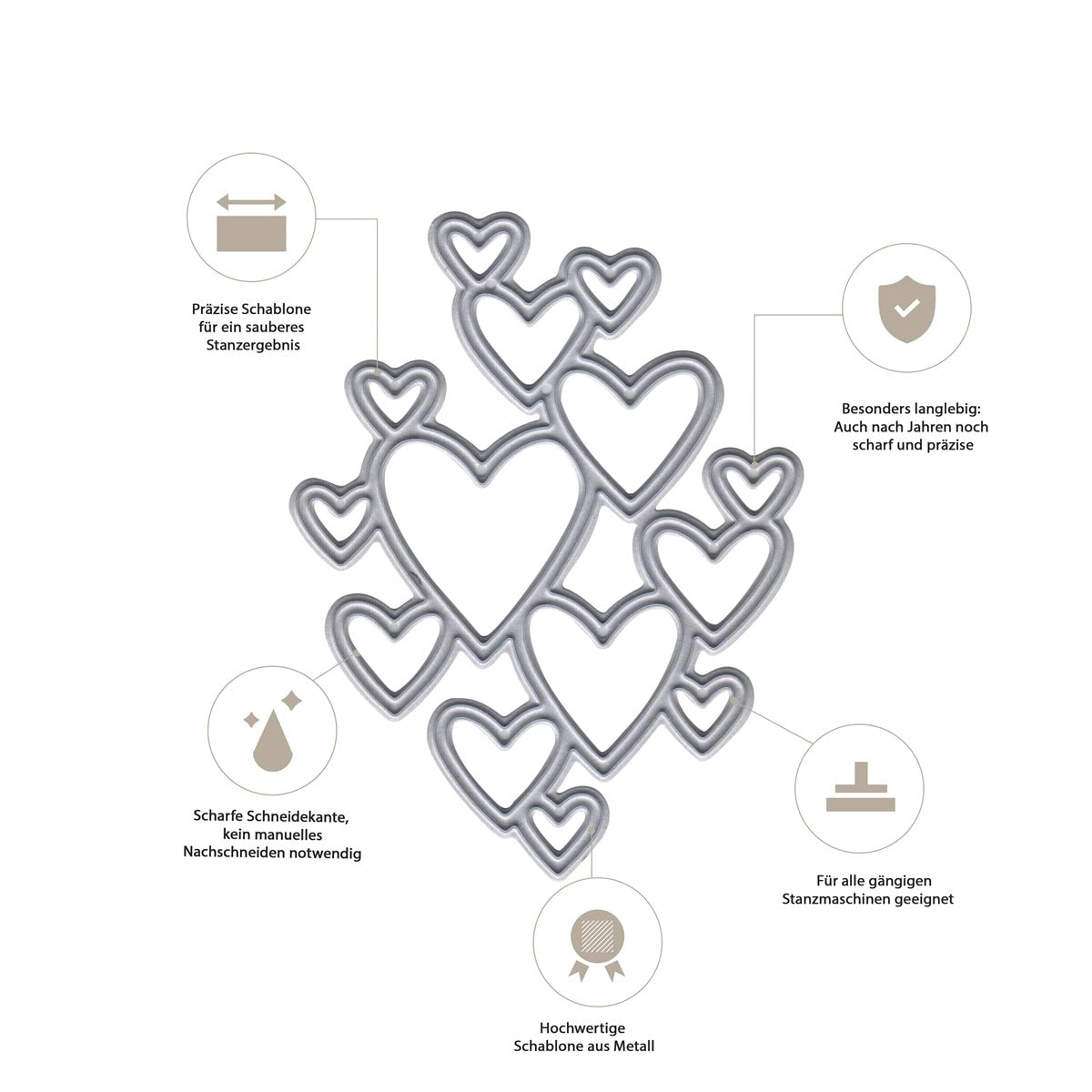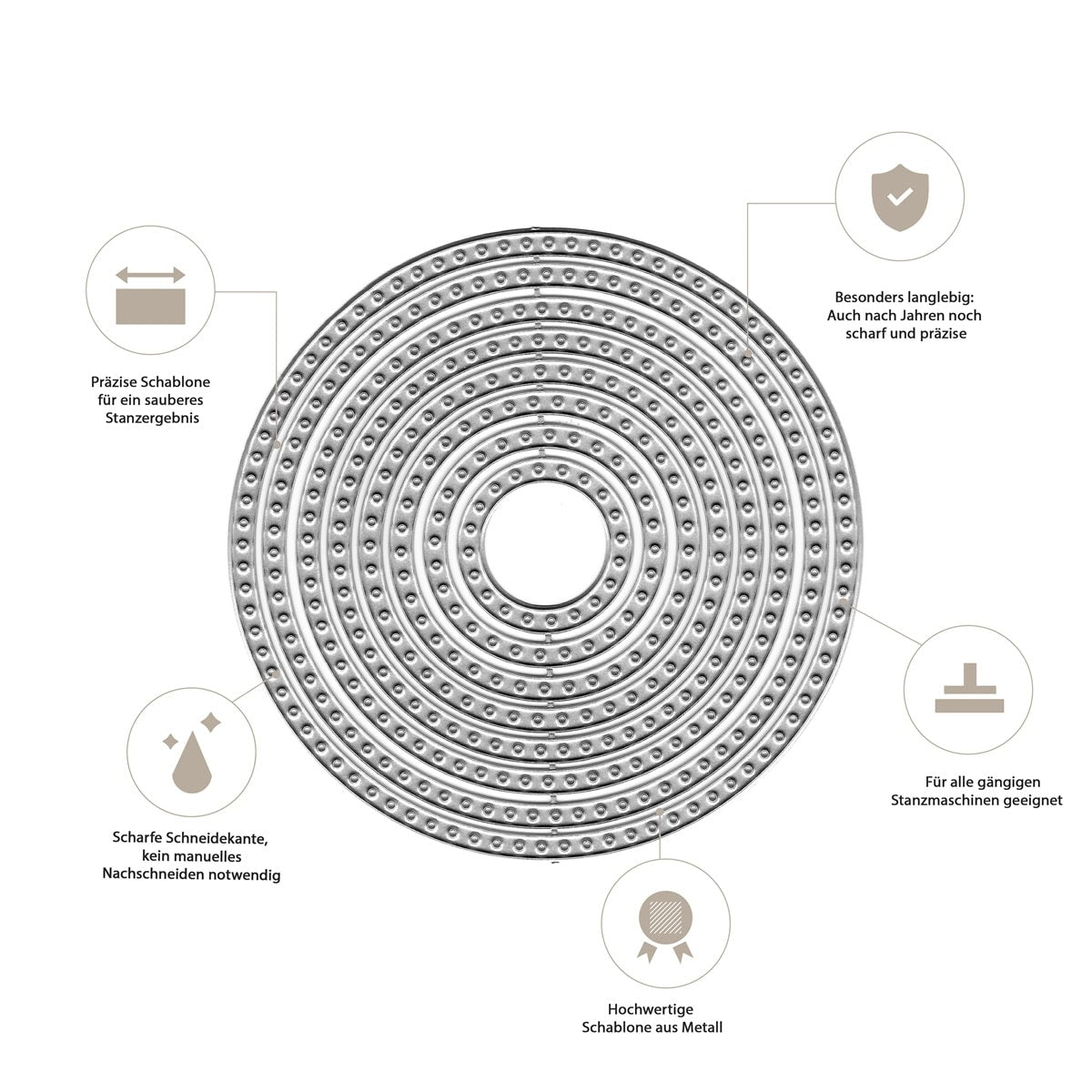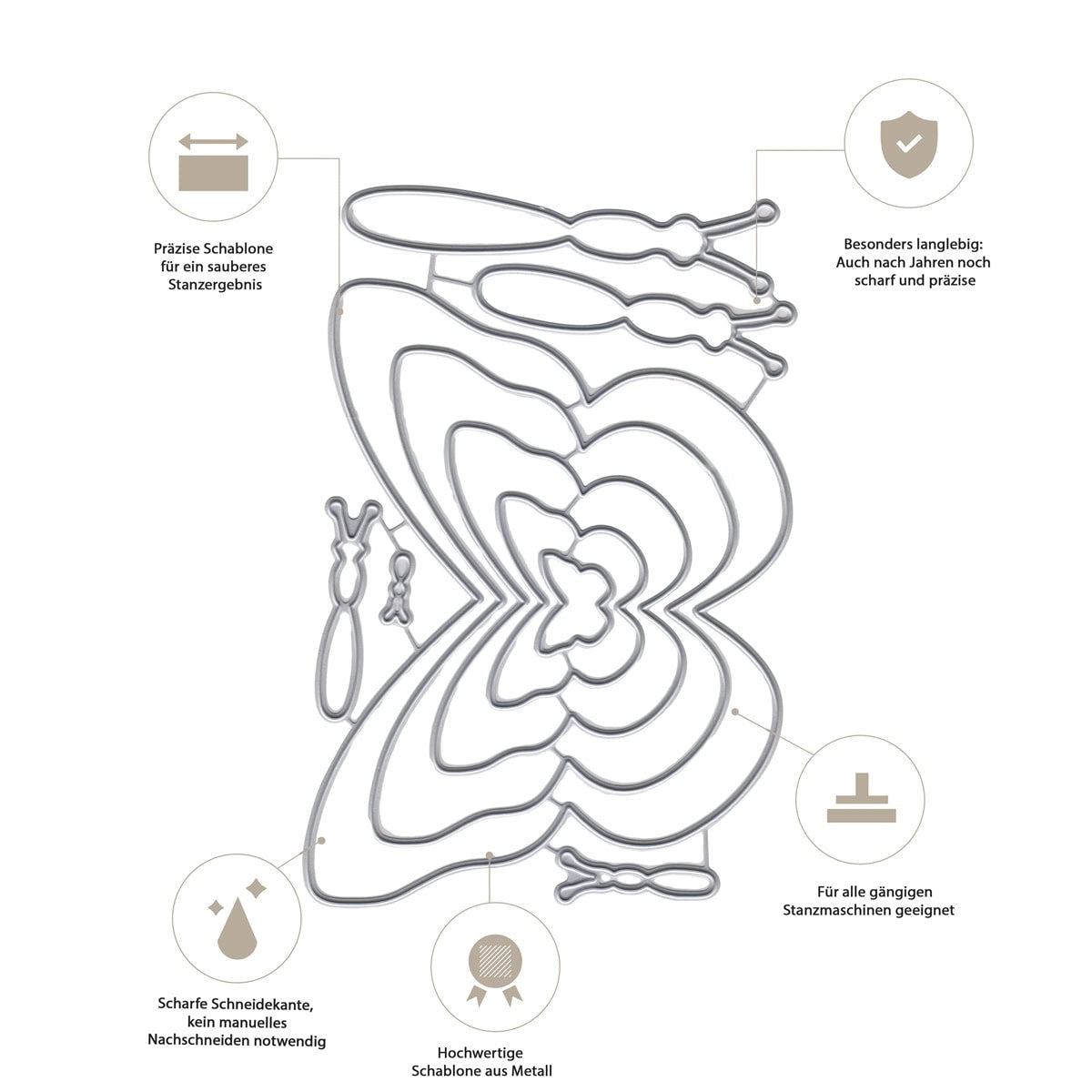 Alle abgebildeten Stanzen sind enthalten. Zubehör wie Papier oder Maschinen ist nicht Teil des Lieferumfangs