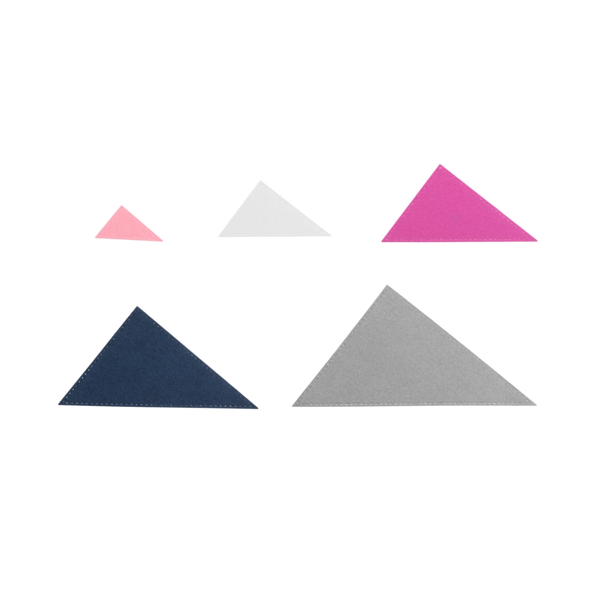Fünf Dreiecke in verschiedenen Größen. Die Dreiecke sind nicht symetrisch, Größe ca. 14,2 x 7,2 cm (Größtes Dreieck) und 4,4 x 2,4 cm (Kleinstes Dreieck).
