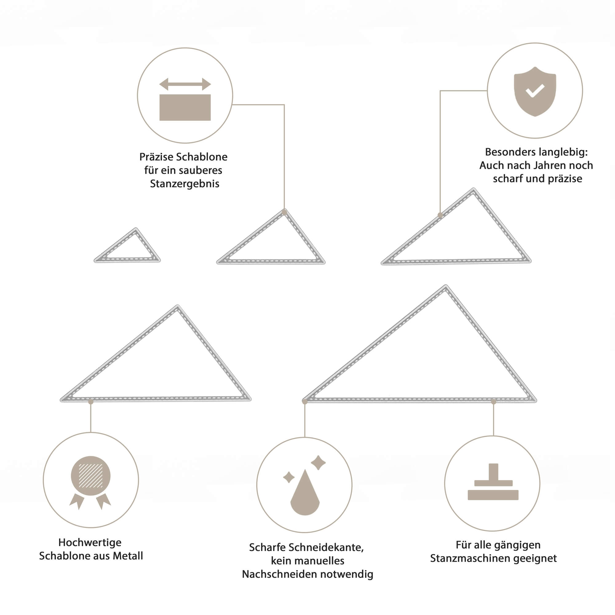 Stanzschablone Fünf Dreiecke mit gesticktem Rand