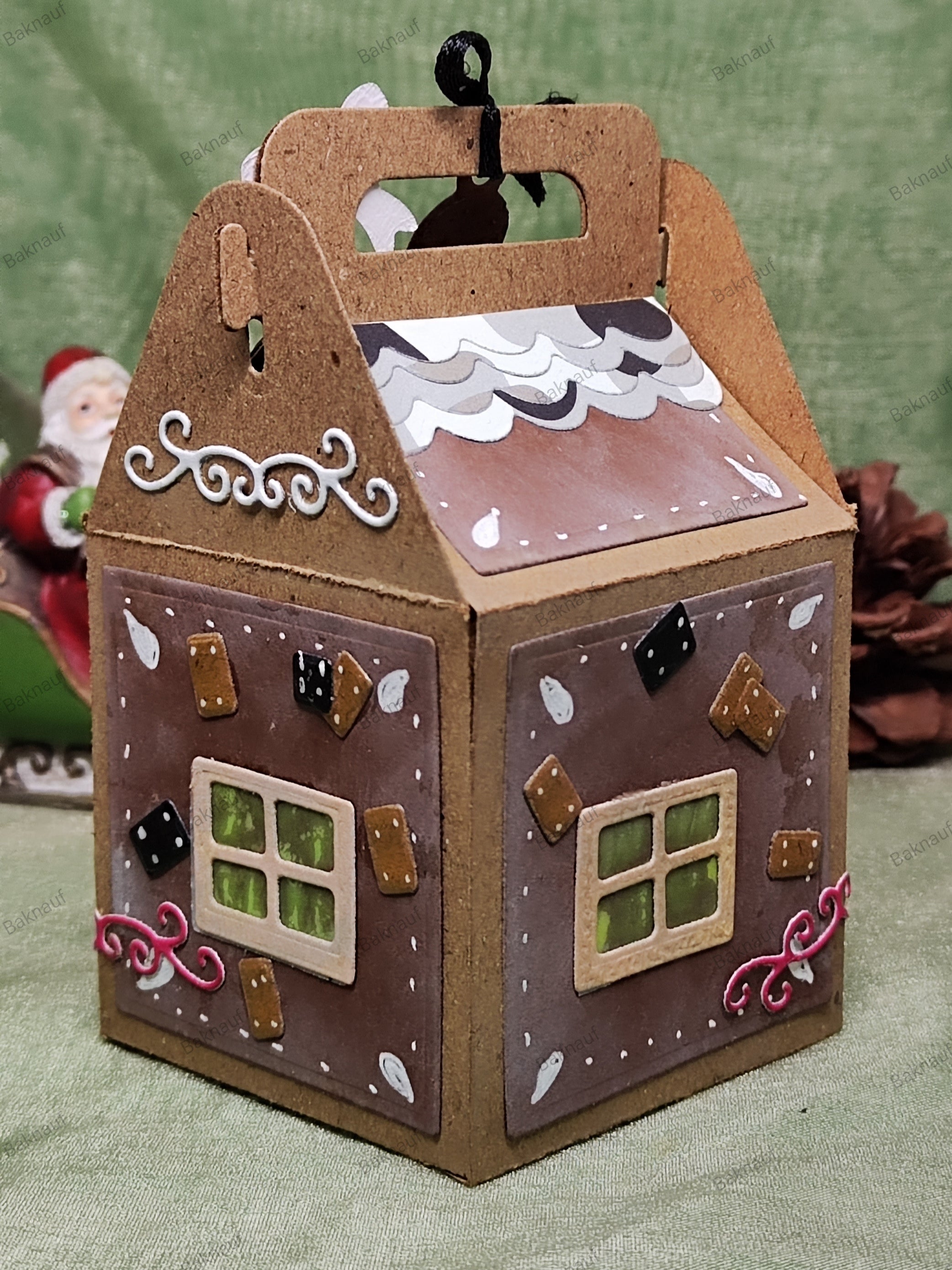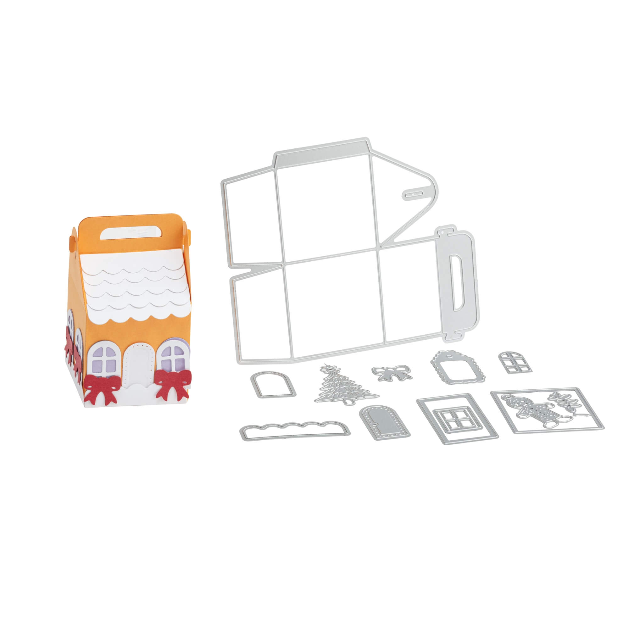 Bastelset für eine Tüte mit winterlichen Motiven. Im Set enthalten sind Fenster, ein Dach, ein Tannenbaum und weitere Motive, Größe ca. 6,5 x 6,5 x 11,5 cm (fertige Schachtel).