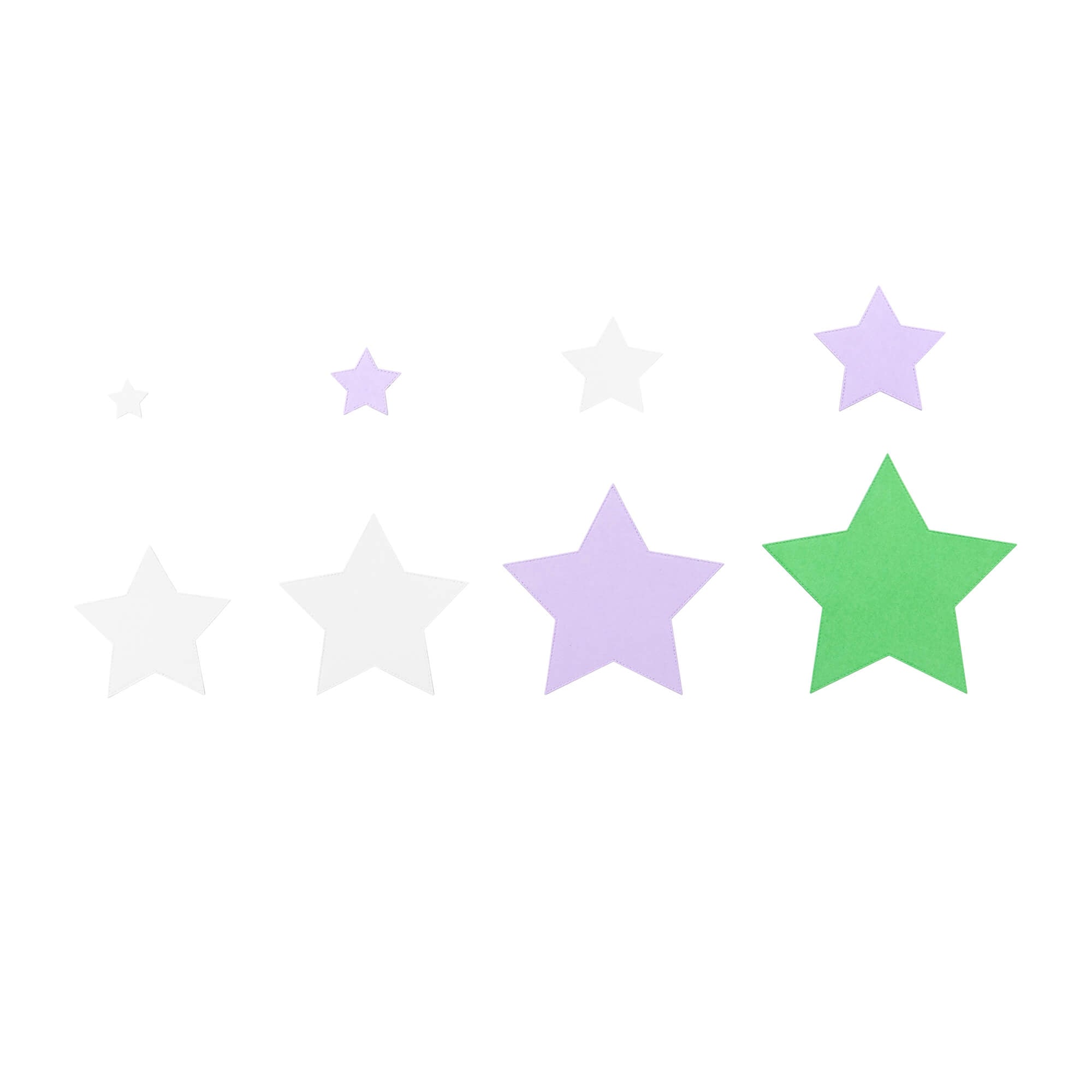 Sterne in Acht verschiedenen Größen, Größe ca. 12 x 11,5 cm (größter Stern) und 2,2 x 2,1 cm (Kleinster Stern).