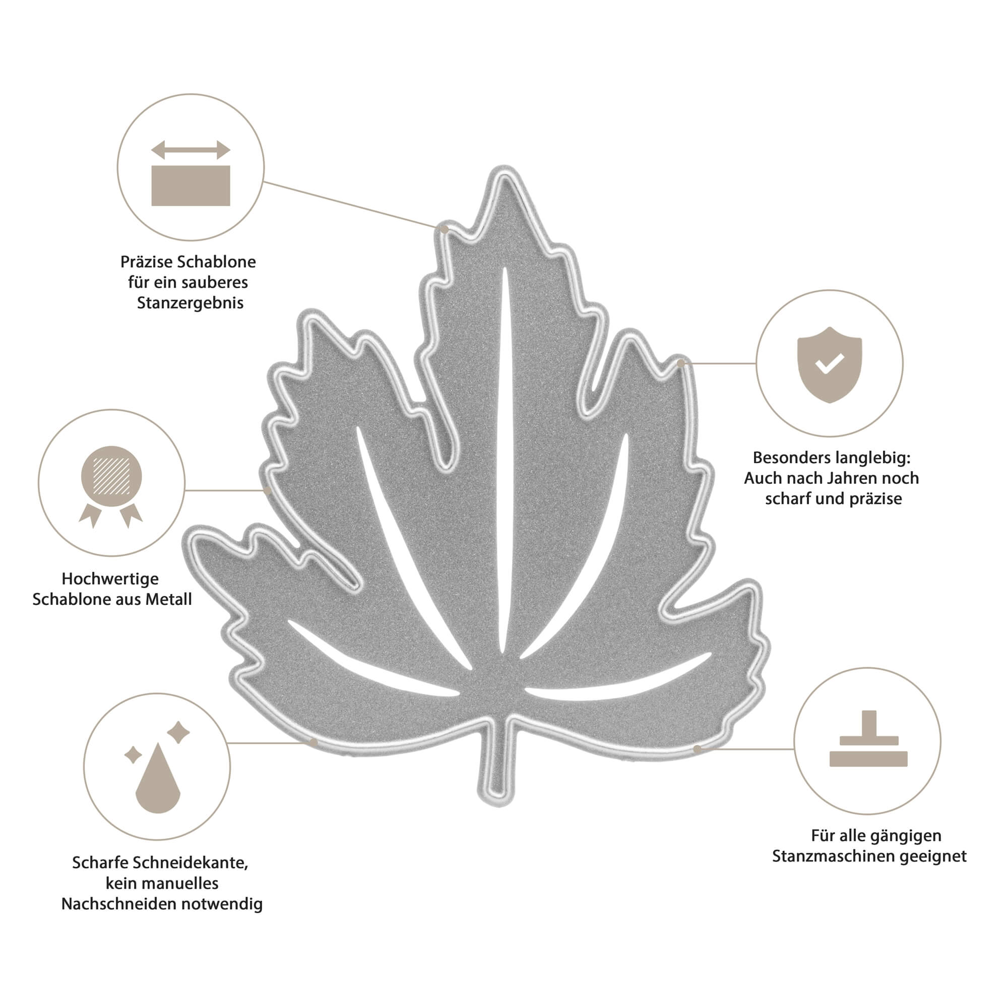 Unsere Stanzschablonen sind grundsätzlich mit allen Stanzmaschinen kompatibel, wenn sie hineinpassen. Für die Stanzschablone: Ahornblatt gilt: