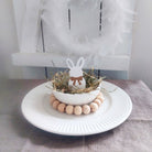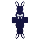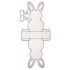 Aufsteller in Osterhasen Form mit kleiner Schleife, Gesamte Stanze ca. 14 x6 cm groß, gefalteter Auftseller ca. 6,5 x 3,5 cm groß.
