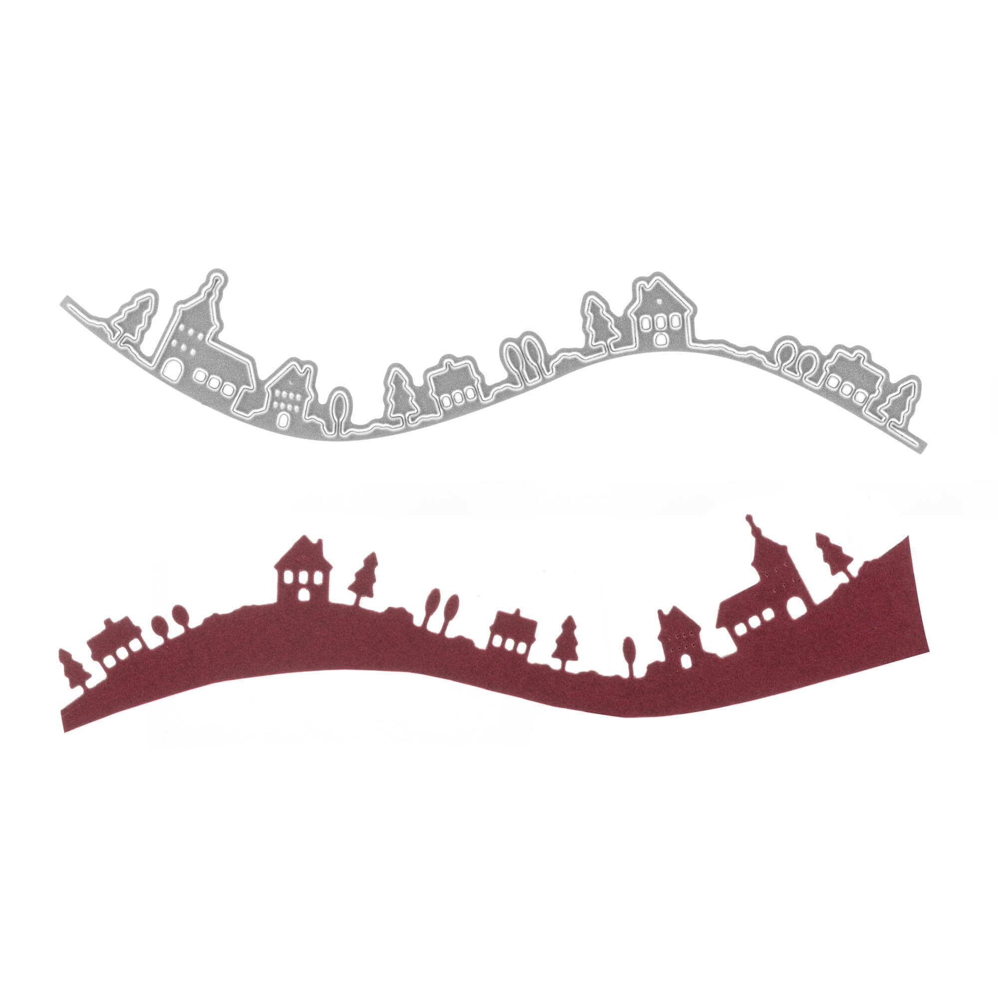 Unsere Stanzschablonen sind grundsätzlich mit allen Stanzmaschinen kompatibel, wenn sie hineinpassen. Für die Stanzschablone: Berglandschaft mit Häusern gilt: