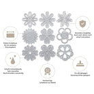Alle abgebildeten Stanzen sind enthalten. Zubehör wie Papier oder Maschinen ist nicht Teil des Lieferumfangs