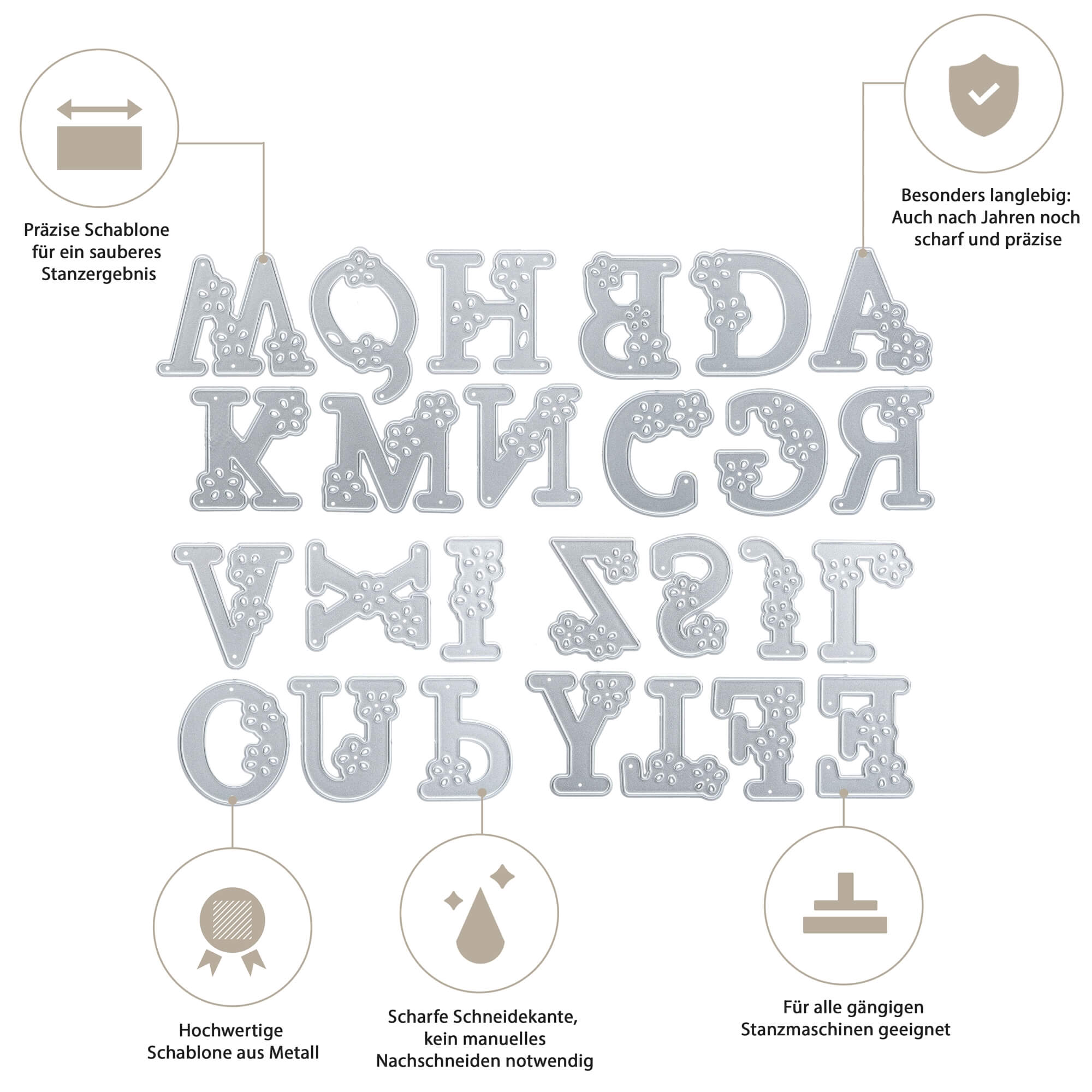 Unsere Stanzschablonen sind grundsätzlich mit allen Stanzmaschinen kompatibel, wenn sie hineinpassen. Für die Stanzschablone: Blumenalphabet gilt: