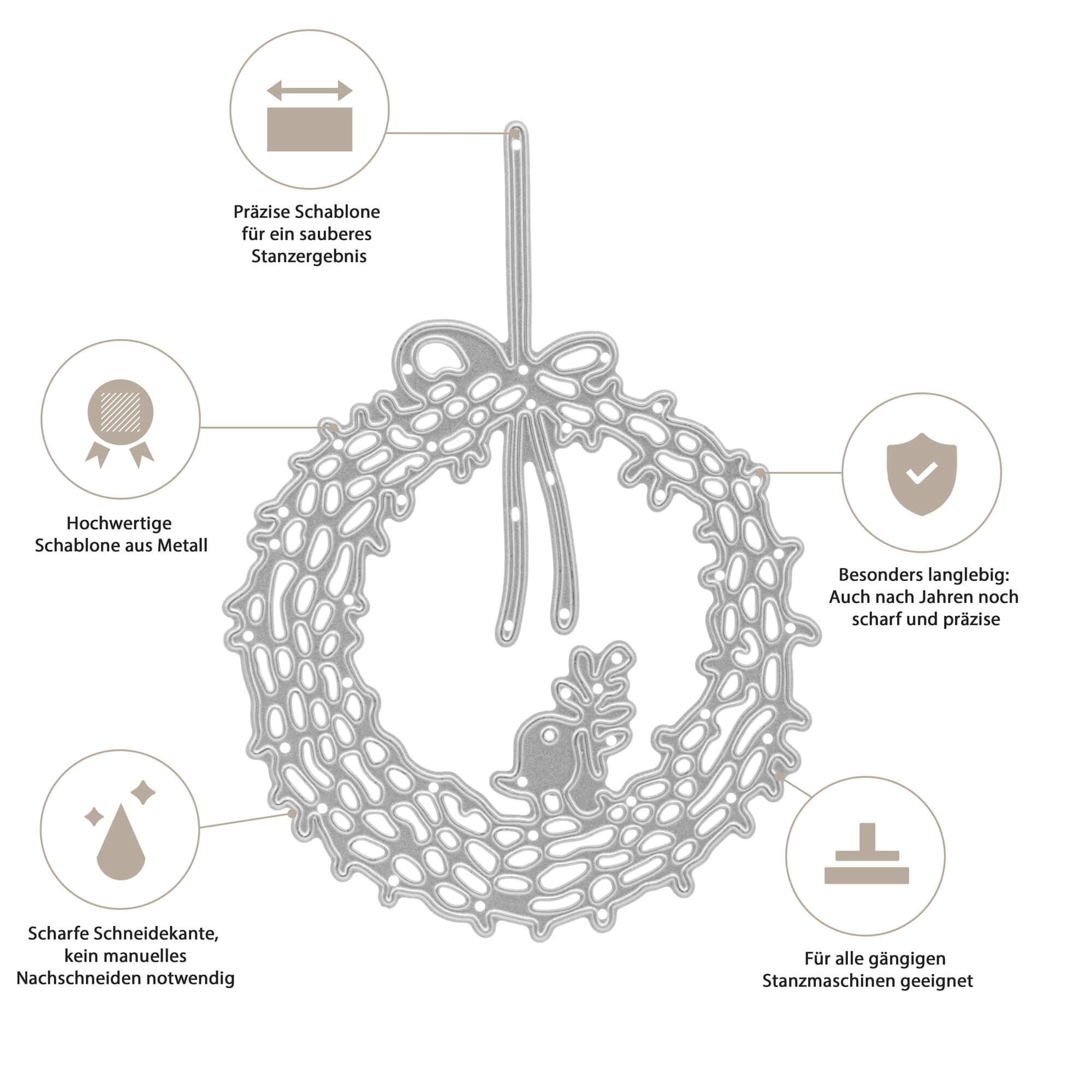 Unsere Stanzen bestehen aus hochwertigem, langlebigem Stahl und sind für den langfristigen Einsatz konzipiert – bei richtiger Anwendung kannst du sie über viele Jahre verwenden.