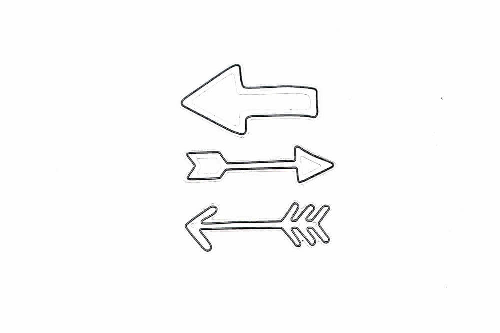 Drei verschiedene Pfeile im Set, Größe der Stanzen: Dicker Pfeil: 4,6 x 2,4 cm / Pfeil 1: 5 x 1,5 cm / Pfeil 2: 5 x 1,3 cm.