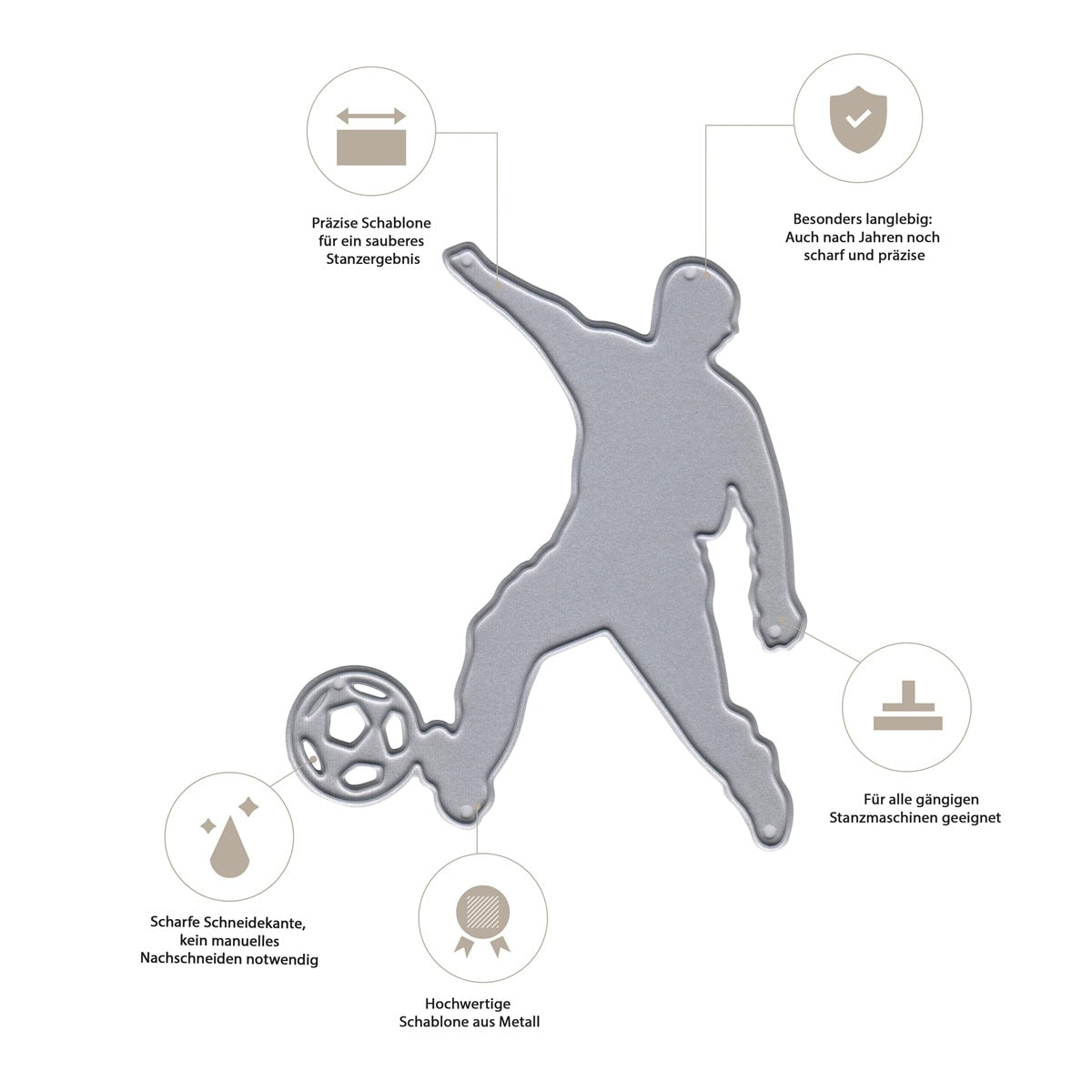 Unsere Stanzschablonen sind grundsätzlich mit allen Stanzmaschinen kompatibel, wenn sie hineinpassen. Für die Stanzschablone Fußballspieler gilt: