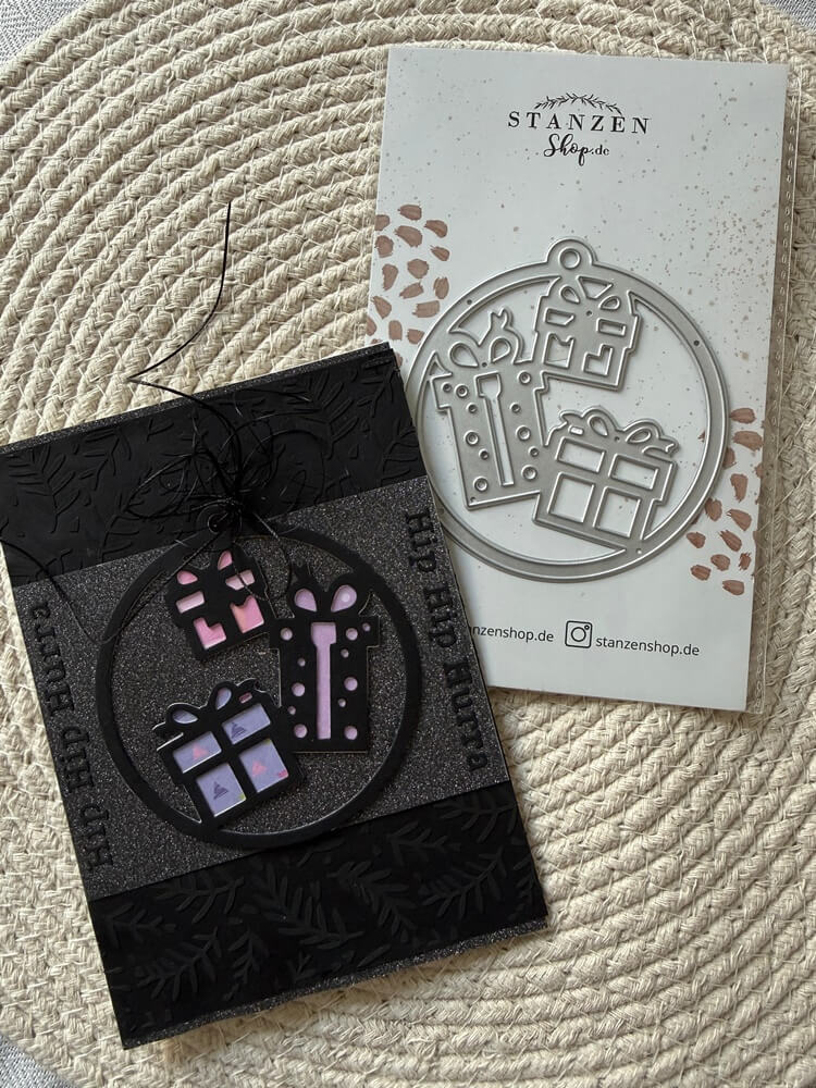 Christina vom YouTube-Kanal „Christinas Bastelstube“ präsentiert diese elegante Karte, bei der die Stanzschablone „Geschenke im Kreisrahmen“ durch die Kombination aus edlem Schwarz, Glitzer und sanften Farbakzenten zum absoluten Highlight wird. Die filigranen Geschenkmotive bieten dir unzählige Möglichkeiten, mit verschiedenen Hintergründen zu experimentieren und so für jeden Anlass – vom Geburtstag bis zum Jubiläum – eine ganz persönliche Botschaft zu gestalten.