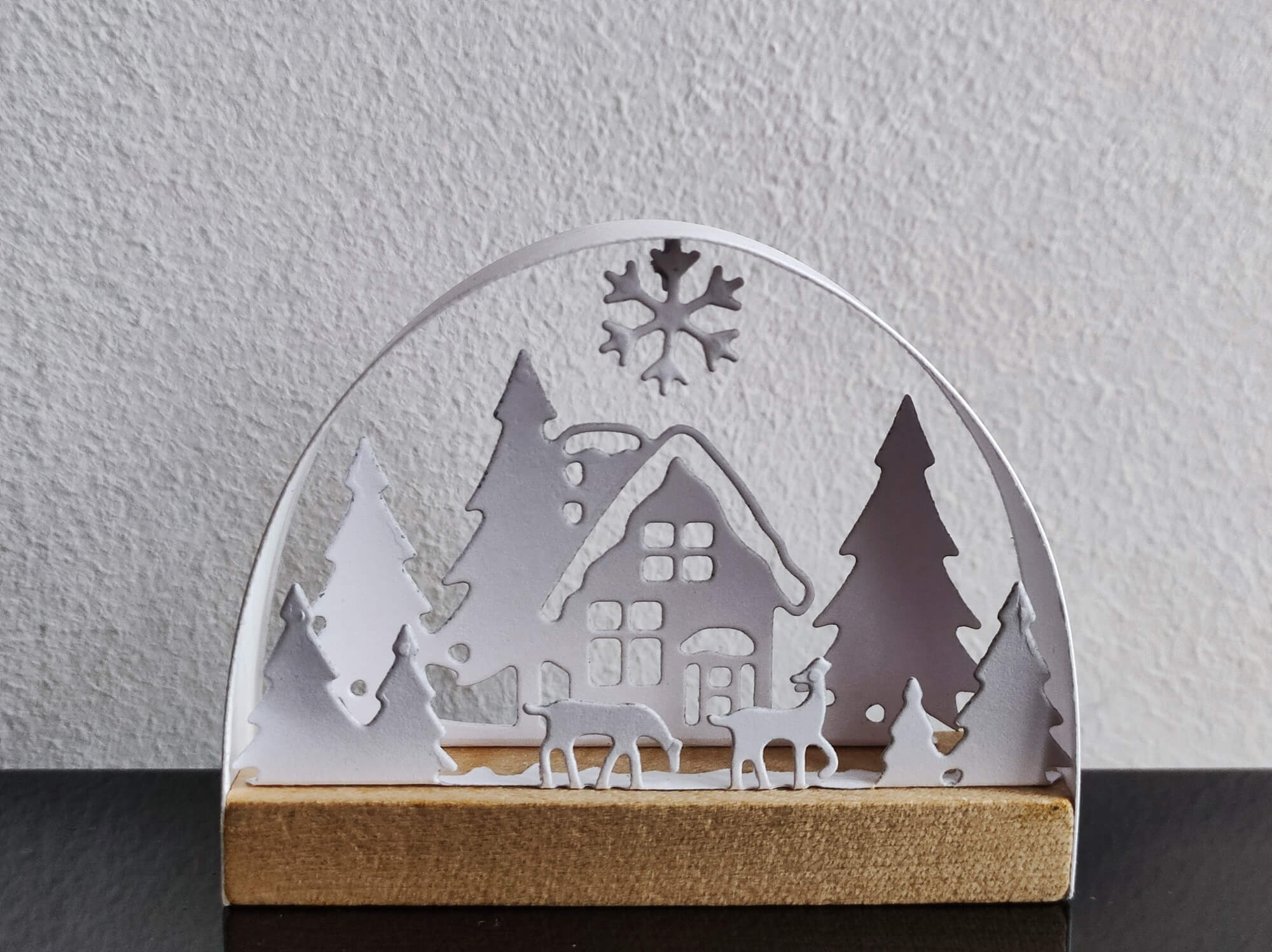 Unsere Stanzschablonen sind grundsätzlich mit allen Stanzmaschinen kompatibel, wenn sie hineinpassen. Für die Stanzschablone Haus im Schnee gilt: