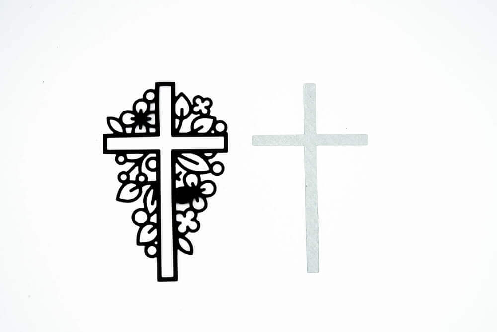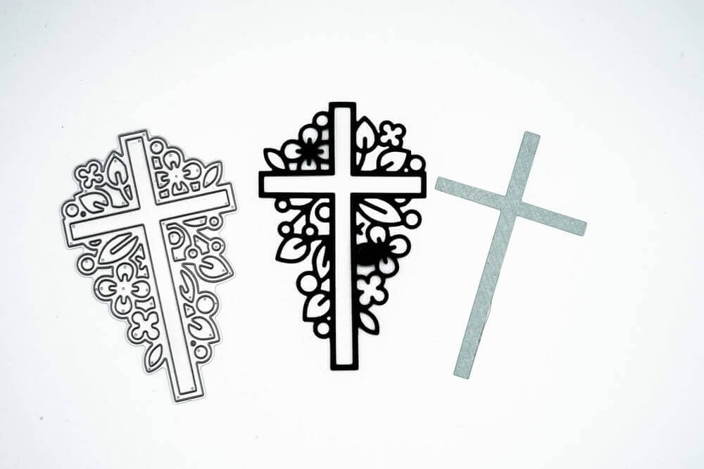 Unsere Stanzschablonen sind grundsätzlich mit allen Stanzmaschinen kompatibel, wenn sie hineinpassen. Für die Stanzschablone Kreuz mit Blumen gilt: