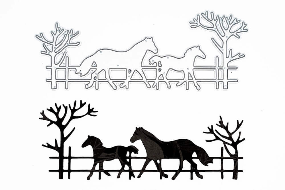 Unsere Stanzschablonen sind grundsätzlich mit allen Stanzmaschinen kompatibel, wenn sie hineinpassen. Für die Stanzschablone Landschaft mit zwei Pferden gilt: