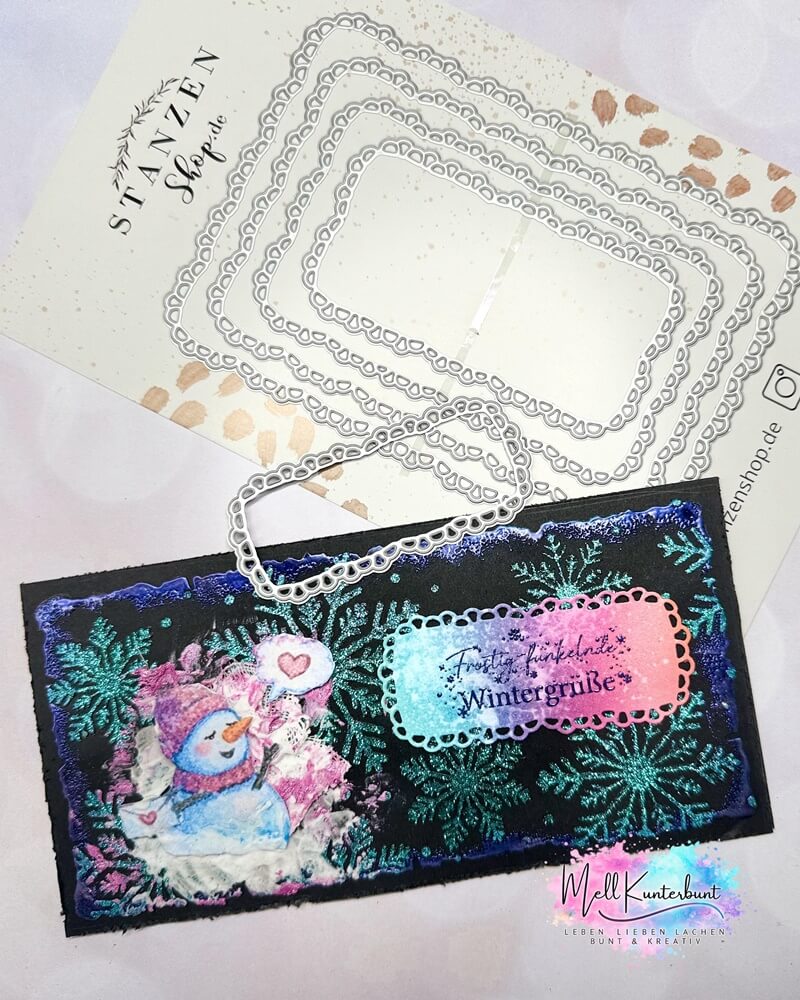 Unsere Stanzschablonen sind grundsätzlich mit allen Stanzmaschinen kompatibel, wenn sie hineinpassen. Für die Stanzschablone Rechtecke mit Spitzenrand gilt: