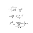 Kleinster Vogel: 3,4 x 2 cm; Größter Vogel: 5,5 x 2,8 cm.