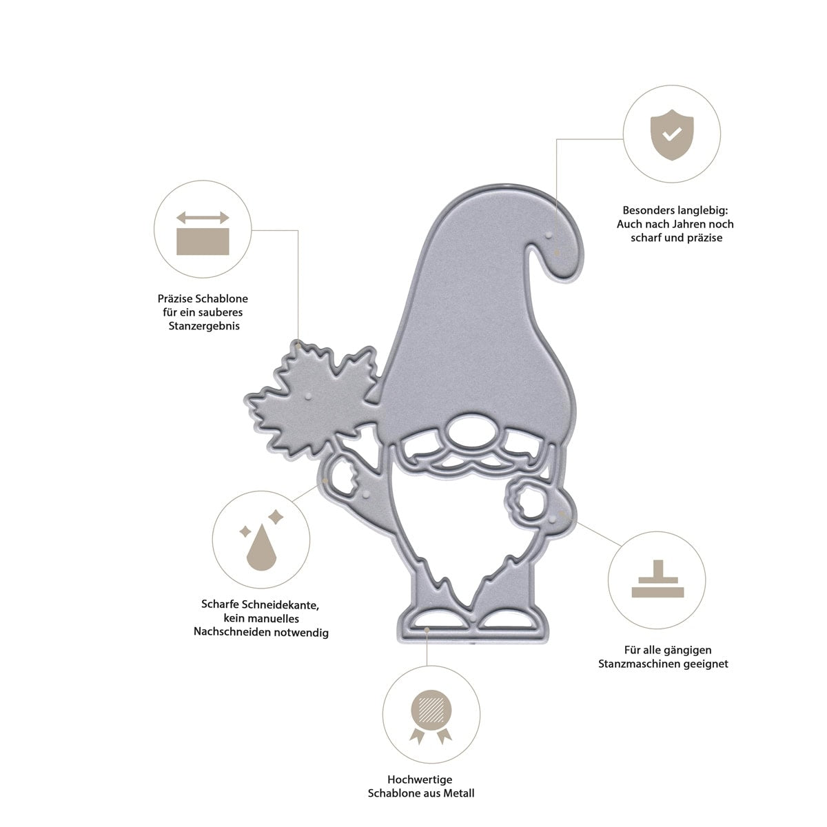 Unsere Stanzschablonen sind grundsätzlich mit allen Stanzmaschinen kompatibel, wenn sie hineinpassen. Für die Stanzschablone Weihnachtswichtel mit Mütze gilt: